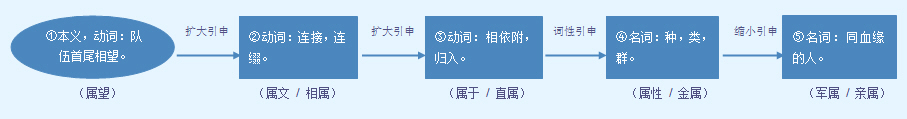 字源解说 蜀,既是声旁也是形旁,表示睁眼察视。属,篆文 = (尾)+ (蜀,睁眼察视),表示看头看尾。造字造字本义:行进的队伍首尾相望。隶书 变形较大,“尾”形消失。 附 文言版《説文解字》:屬,連也。从尾,蜀聲。 附 白话版《说文解字》:属,连续。字形采用“尾”作边旁,采用“蜀”作声旁。 引申线索