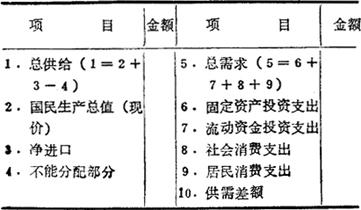 测算社会总需求和总供给的平衡,为国家对国民经济进行宏观调控提供依据的报表。格式如下: