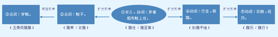 字源解说 履,金文 = (足,行走)+ (页,头,代表思虑、职责),表示前往就任。籀文字形 、 、 、 多样化,字件包括“足” (或“止” 或“行” ,表示前行)、“舟” (或“支” ,表示船形鞋或木屐)、“页” (或“尸”即“人” ,表示思虑、职责),造字本义:穿着船形鞋上任。篆文 将籀文 和 的字形相结合。 将“舟” 写成 。隶书 误将篆文的“舟” 和“止” 连写成“复” 。 附 文言版《説文解字》:履,足所依也。从尸,从彳,从夊,舟象履形。一曰尸聲。凡履之屬皆从履。 ,古文履,从頁从足。 附 白话版《说文解字》:履,脚在行路时所依赖的安全保护物,即鞋子。字形采用“尸、彳、夊、舟”会义。“舟”像鞋子的样子。另一种说法认为,“尸”是声旁。所有与履相关的字,都采用“履”作边旁。 ,这是古文写法的“履”字,字形采用“頁、足”作边旁。 引申线索