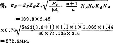 ❻ 精确验算齿面接触疲劳强度:按表4.16-19所列公式,并算出