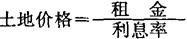 释义 | 土地价格理论公式 适用于不同类型土地定价中计算土地价格公式的高度概括。 它表现为: 公式的分子包括使用土地代价(纯粹为使用土地而支付的绝对地租、级差地租以至垄断地租)以及土地投资的价值补偿和利息。公式的分母中,计算土地价格所依据的利息率应该低于其他较长期投资的利息率。 |