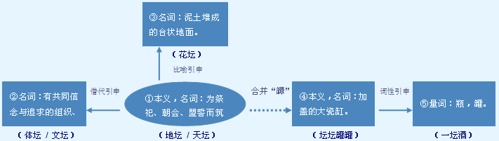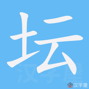 字源解说 本 字“壇” 亶,既是声旁也是形旁,表示塔形谷仓。坛,篆文 = (土台)+ (亶,塔形谷仓),造字本义:古代为祭祀、朝会、盟誓而筑的塔台。俗体楷书 以简单字形“云” 代替正体楷书 的复杂字形“亶” 。 合并字“罈” 罈=缶(瓦器)+覃(罩盖),造字本义:加盖的大瓷缸。 附 文言版《説文解字》:壇,祭場也。从土,亶聲。 附 白话版《说文解字》:壇,祭场。字形采用“土”作边旁,“亶”是声旁。 引申线索