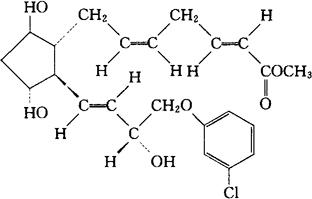 C23H29ClO6=436.93 CAS-62524-99-6 (2E,5Z)-7-[(1R,2R,3R,5S)-2-[(E)-(3R)-4-(间-氯苯氧)-3-羟-1-丁烯基]-3,5-二羟环戊基]-2,5-庚二烯酸甲酯。 Methyl(2E,5Z)-7-[(1R,2R,3R,5S)-2-[(E)-(3R)-4-(m-chlorophenoxy)-3-hydroxy-1-butenyl]-3,5-dihydroxycyclopentyl]-2,5-heptadienoate. 前列腺素类药。 Delprostenate. INN,BAN,USAN.  |