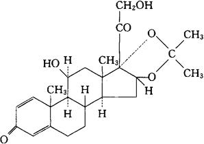 C24H32O6=416.51 CAS-638-94-8 (11β,16α)-11,21-二羟-16,17-[(1-甲基亚乙基)双(氧)]孕甾-1,4-二烯-3,20-二酮。 Pregna-1,4-diene-3,20-dione,11,21-dihydroxy-16,17-[(1-methylethylidene)bis(oxy)]-,(11β,16α)-. 11β,16α,17,21-四羟孕甾-1,4-二烯-3,20-二酮与丙酮形成环16,17-乙缩醛。 11β,16α,17,21-Tetrahydroxypregna-1,4-diene-3,20-dione cyclic 16,17-acetal with acetone. 肾上腺皮质激素类药,消炎药。 Desonide,D2083,Tridesilon. INN,BAN,USAN.