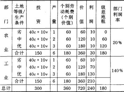 释义 | 地租 是为使用土地而支付给土地所有者的费用。 它与租金不同,后者是土地使用者为获得土地的使用权而支付给土地所有者的全部货币额,其中除了“真正的地租”外,还可能包括投入土地的固定资本的利息和折旧(马克思,1975a,P.705)。地租分为级差地租(differential rent)和绝对地租(absolute rent),前者是由土地经营的垄断造成的,后者是由土地所有权的垄断造成的。 1.古典地租理论的矛盾 (1)李嘉图——马克思的级差地租学说。 级差地租理论是由韦斯特(West)、马尔萨斯(Malthus)、托伦斯(Torrens)和李嘉图(Ricardo)几乎在同一个时期(1815)各自独立地提出的。 但在这四位经济学家中,只有李嘉图试图在价值论的基础上阐明级差地租的来源及其量的规定,所以,级差地租理论与李嘉图的名字紧密地联系在一起,并成为李嘉图学说中最负盛名的一部分。然而,李嘉图的级差地租与价值规定之间,存在著尖锐的矛盾。 李嘉图认为,级差地租之所以产生,是因为随著人口的增加以及对农产品需求的增加,人们不得不进而耕种质量较差的土地,而一切商品,不论是工业制造品、矿产品还是土地产品,其价值都是由最劣等生产条件下的劳动耗费决定的,这样,较优等条件的产品的市场价值与个别价值之间的差额就转化为级差地租。以表1为例: 表1 表1说明,工农业部门全部生产耗费为360(假定剩余价值率为100%),却创造了720的价值,总量为60的剩余价值,却表现为240利润+180地租。 显然,工业部门180的超额利润和农业部门180的级差地租成了无源之水,无本之木,这是违背劳动价值论的。不仅如此,由于农业部门在扣除了地租后,只能得到20%的利润,而工业部门不交租,却得到了140%的利润,这是违背平均利润率规律的。 李嘉图体系的上述矛盾,在马克思级差地租理论中得到了解决。马克思指出,农产品价值是由劣等条件下的个别劳动耗费(个别价值)决定的,而工业品价值则是由平均生产条件下的个别劳动耗费(个别价值)决定的。 以表2为例: 表2 因此,马克思认为,级差地租的源泉是优等地和中等地的农业雇佣工人创造的超额剩余价值即超额利润。 (2)绝对地租存在的条件。 李嘉图只承认级差地租,而否认绝对地租,他认为投入最劣等土地的资本只提供平均利润,不提供任何地租。绝对地租概念是由马克思(1975a,1975b)提出的,它原本是指农业资本家支付给土地所有者的租金,不管土地的肥沃程度如何。 马克思认为,绝对地租存在的原因或条件是土地所有权的垄断,他指出,只要存在著土地所有权的垄断,哪怕是使用劣等土地也必须支付地租,否则就意味著土地所有权的废除,即使不是法律上的废除,也是事实上的废除(1975a)。马克思认为,绝对地租来源于农产品价值与生产价格的差额,这实际上等于承认绝对地租的存在要以农业资本有机构成低于工业资本有机构成为前提。 2.级差地租Ⅰ与级差地租Ⅱ 马克思认为,由于形成条件不同,级差地租分为两种形态,即级差地租Ⅰ与级差地租Ⅱ。级差地租Ⅰ是由于土地肥沃程度不同和地理位置优劣而产生的级差地租。 级差地租Ⅱ是由于在同一块土地上连续增加投资的资本生产率不同而产生的级差地租。级差地租Ⅰ是级差地租Ⅱ产生和存在的基础。 在超额利润转化为级差地租的理论概括中,马克思指出,级差地租Ⅰ与级差地租Ⅱ也是有所不同的。构成级差地租Ⅰ的超额利润,在租约内规定为土地所有者所有。 构成级差地租Ⅱ的超额利润,在租约期满前归投资者所有,而在租约期满后签订新租约时,会通过提高地租额转归为土地所有者所有。 参考文献: 马克思,1975a,《资本论》第3卷,人民出版社。 马克思,1975b,《剩余价值理论》,人民出版社。 李嘉图,1962,《政治经济学及赋税原理》,商务印书馆。 |