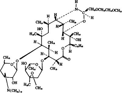 释义 | 地红霉素 C42H78N2O14=835.09 CAS-62013-04-1 (9S)-9-脱氧代-11-脱氧-9,11-[亚氨基[(R)-2-(2-甲氧基乙氧)亚乙基]氧]红霉素。 (9S)-9-Deoxo-11-deoxy-9,11-[imino[(R)-2-(2-methoxyethoxy)ethylidene]oxy]erythromycin. 抗生素类药。 Dirithromycin,LY 237216. INN,USAN. |