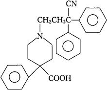 C28H28N2O2=424.54 CAS-28782-42-5 1-(3-氰基-3,3-二苯丙基)-4-苯基-4-哌啶羧酸。 4-Piperidinecarboxylic acid,1-(3-cyano-3,3-diphenylpropyl)-4-phenyl-. 1-(3-氰基-3,3-二苯丙基)-4-苯基-3-异哌啶甲酸。 1-(3-Cyano-3,3-diphenylpropyl)-4-phenyl-isonipecotic acid. 止泻药。 地非诺辛。 Difenoxin,McN-JR-15,403-11,R15,403(as Hydrochloride). INN,BAN,USAN.  |