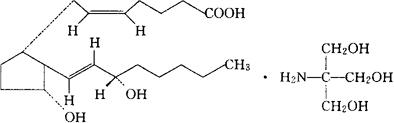 释义 | 地诺前列素氨基丁三醇 C20H34O5·C4H11NO3=475.62 CAS-38562-01-5 9,11,15-三羟前列腺-5,13-二烯-1-酸,(5Z,9α,-11α-13E,15S)与-2-氨基-2-(羟甲基)1,3-丙二醇(1∶1)的化合物。 Prosta-5,13-dien-1-oic acid,9,11,15-trihydroxy-,(5Z,9α,11α13E,15S)-,compd.with 2-amino-2-(hydroxymethyl)-1,3-propanediol(1∶1). (E,Z)-(1R,2R,3R,5S)-7-(3,5-二羟-2-(3S)-(3-羟-1-辛烯基)环戊基]-5-庚烯酸与二氨基-2-(羟甲基)-1,3-丙二醇的化合物(1∶1)。 (E,Z)-(1R,2R,3R,5S)-7-[3,5-Dihydroxy-2-(3S)-(3-hydroxy-1-octenyl)cyclopentyl]-5-heptenoicacid compoundwith-2-amino-2-(hydroxymethyl)-1,3-propanediol(1∶1). 氨基丁三醇前列腺素F2a。 Prostaglandin F2aTromethamine. 子宫收缩药。 前列腺素F2a。 Dinoprost Tromethamine,PGF2α,THAM,U-14,583E. BAN(Dinopost Tromethamol),USAN. |