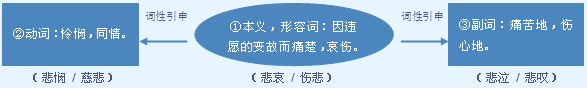 释义 | ![]() 心中难过: ~伤|~痛|~哀|不要如此~天悯人。 哀 āi ★ 两个词的搭配各有不同,“哀”多组成“哀思、哀悼、哀歌一曲”等词语。 伤心;难过: ~伤|~惨|乐极生~|~欢离合。 欢 huān ~乐|~快的节目。 乐 lè ~观|~不可支。 喜 xǐ ~悦|悲~交集。 悲伤。常用作语素构成合成词,也可单独作句子成分。 a.作谓语。 李毛驴又~又喜|欲~闻鬼叫,我哭豺狼笑|~不自胜|~极伤身。 b.作定语。 浮云为我阴,~风为我旋。 c.作主语。 ~喜交集|~从中来。 d.作宾语。 乐极生~。 怜悯。可带宾语。 ~天悯人。 【近】 〈形〉哀 〈动〉怜 【反】 喜 乐 欢 【词语】 悲愁 悲怆 悲悼 悲歌 悲欢离合 悲剧 悲剧性 悲苦 悲凉 悲鸣 悲戚 悲切 悲酸 悲叹 悲天悯人 悲喜交集 悲喜剧 悲辛 悲咽 悲壮 字源解说 非,既是声旁也是形旁,即“排”。悲,金文 ![]() ![]() ![]() ![]() ![]() ![]() ![]() 附 文言版《説文解字》:悲,痛也。从心,非聲。 附 白话版《说文解字》:悲,哀痛。字形采用“心”作边旁,采用“非”作声旁。 引申线索 ![]() 【字族索引】 非 【同音字】 bēi |