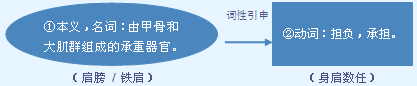 释义 | ![]() 字源解说 肩,金文 ![]() ![]() ![]() ![]() ![]() 附 文言版《説文解字》:肩,髆也。从肉,象形。俗肩从戸。 附 白话版《说文解字》:肩,肩髆。字形采用“肉、户”会义,“户”像肩甲连臂的形状。俗体“肩”字,采用“户”作边旁。 引申线索 ![]() 【字族索引】 肩 【同音字】 jiān |