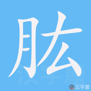 字源解说 厷,甲骨文 在 (又,手臂)下方加一个半圆 ,造字本义:手臂上鼓起的肌肉群。籀文 省去手臂形状 ,强调手臂上鼓起的肌肉 ,写成 。篆文 承续甲骨文 字形。“厷”作为单纯字件后,篆文异体字 加“肉” 另造“肱”,强调手臂“肌肉”突出的部位。在甲骨文里,隆起的半圆在“人”的前部为“身”(孕) ;隆起的半圆在“人”的后部为“臀” ;隆起的半圆在“又”(手臂)下方为“肱” 。 附 文言版《説文解字》:肱,厷,臂上也。从又,从古文厶。厶,古文厷,象形。肱,厷或从肉。 附 白话版《说文解字》:肱,手臂的上部。字形采用“又、厶会义”。厶,这是古文写法的“厷”,像人手的曲臂之形。肱,这是“厷”的篆文异体字,字形采用“肉”作边旁。