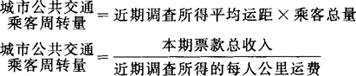 指在一定时期内运送的乘客所乘坐的公里数。包括月票乘客、普通乘客和团体包车乘客。它有两种计算方法,其计算公式为: