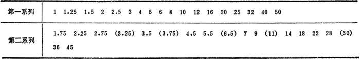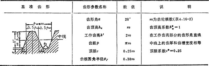 渐开线圆柱齿轮基准齿形及模数系列见表4.16-1和4.16-2。除标准规定的基准齿形及模数外,也使用非标准齿形,如齿形角a=22.5°、25°或28°。短齿 或0.6,长齿 等。有时还使用双模数齿轮,即m1/m2制(其中模数m1用于计算分度圆直径,模数m2用于计算齿高)。国外采用的英制单位的基准齿形,其齿形角有20°、14.5°和15°等。齿轮采用径节DP作为计算齿轮几何尺寸的基本参数,有时也使用双径节齿轮传动。所采用的顶隙系数也各有异同。 表4.16-1 基准齿形及齿形参数(摘自GB1356-87)  注: ❶ 基准齿形是指基准齿条的法面齿形。 ❷ 本标准的基准齿形及其参数值适用于模数m≥1mm的渐开线圆柱齿轮。 表4.16-2 齿轮模数系列(摘自GB1357-87) mm  注: ❶ 对斜齿圆柱齿轮是指法面模数mn。 ❷ 优先选用第一系列,括号内的数值尽可能不用。 |
