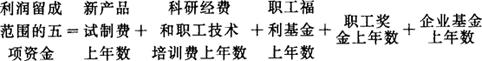 生产发展基金=新产品试制费+科研经费+职工技术培训费 职工福利基金总数=职工福利基金+企业基金×分配百分比 职工奖励基金=职工奖金+企业基金×分配百分比 |