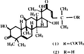 释义 | 壶卢 【概况】: 异名 甜瓠 基源 为葫芦科葫芦属植物瓠瓜的果实。葫芦属全世界约6种;中国栽培1种及3变种,皆可入药。 原植物 瓠瓜Lagenaria siceraria(Molina)Standl.var.depressa(Ser.)Hara 历史 葫芦中国古代最早的书籍《诗经》即有记载。《诗·幽风·七月》:“八月断壶。”毛传:“壶、匏也”。壶卢始载于《日华子本草》,释名瓠瓜、匏瓜。李时珍曰:“壶、器也。卢,饭器也。此物名象其形,又可为酒饭之器,因以名之。俗作葫芦者,非矣。……其圆者曰匏,亦曰瓢,因其可以浮水如泡,如漂也。凡 古人壶、瓠、匏三名,皆可通称,初无分别,……而后世以长如越瓜首尾如一者为为瓠、音护,瓠之一头有腹长柄者为悬瓠,无柄而圆大形扁者为匏、匏之有短柄大腹者为壶、壶之有细腰者为蒲芦、各分各色,同异于古,以今参详、其形状虽各有不同、而苗叶皮子性味则一。”从上所述,壶卢、匏与今人瓠瓜相符。 形态 一年生攀援草本。茎幼时被粘质长柔毛。 卷须纤细,2歧、有微柔毛。叶柄长16~20cm,被毛,顶端有2腺体;叶片卵状心形,长宽均10~35cm,不裂或3~5裂,具5~7掌状脉,边缘有不规则齿,基部心形,两面被微柔毛。 花雌雄同株,均单生;雄花花梗、花萼、花冠均被微柔毛,萼筒漏斗状,长约2cm,裂片披针形,花冠黄色,裂片长圆状倒卵形,长3~4cm,宽2~3cm,顶端微凹,5脉,雄蕊3,药室折曲;雌花子房密生粘质长柔毛。瓠果扁球形、直径约30cm,熟后果皮木质。 种子倒卵形,白色。 花果期6~10月。(图见《中草药学》.下册.1096页.图868) 生境与分布 中国各地栽培。世界热带到温带地区也广泛栽培。 。【化学】: 含有葫芦素(Cucurbitacin)类成分:葫芦素B(Cucurbitacin B)[1](1)和葫芦素D(Cucurbitacin D)[2](2),其中葫芦素B具有很强的细胞毒性,对人体口腔癌细胞有抑制作用[1]。 又含亚麻酸、油酸、棕榈酸等脂肪酸类[3],抗坏血酸、β-胡萝卜素等维生素类[4、5],三甘油化合物、氨基酸、蛋白质、多糖、香豆酸(m-Coumaric acid)、石碳酸和矿物质等[6、7、8]。另外,还含有NDF(Neutral depergent fiber)[9],主要由纤维素和木质素组成。 参考文献 [1] Varasarn Paesachasarthara 1981;8(1):5 [2] Shokuhin Eisei Kenkyu 1983;33(4):385 [3] Trans Bose Res Inst(Calcutta)1984;47(2):111 [4] Pak J Sci Res 1980;32(1-2):86 [5] Food Chem 1988;27(4):245 [6] Plant Foods Hum Nutr 1984;34(2):81 [7] Curr Trends Life Sci 1982;9:147 [8] Indian Phytopathol 1977;30(2):237 [9] Nutr Rep Int 1982;26(6):1053。【药理】: ❶ 抗肝炎作用 本品所含的葫芦素B对四氯化碳急性中毒的大鼠,有明显降低谷丙转氨酶的作用,病理可见对肝细胞的疏松变性、坏死及空泡也有治疗作用。 对实验性大鼠慢性肝损伤的防治实验中,葫芦素B能明显增加肝糖元蓄积以及阻止肝细胞脂肪变性和明显抑制肝纤维增生的作用。 毒性 葫芦素B小鼠1次ig的LD50为14.0±3.0mg/kg,1次sc为1.0±0.07mg/kg;大鼠sc连续6d为2.2土0.3mg/kg。 参考文献 植物药有效成分手册.人民卫生出版社,1986∶269。【药性】: 性味 甘、淡,平。 ❶ 《滇南本草》:“寒,甘、淡。” 归经 入肺、脾、肾经。 ❶ 《本草求真》:“入心、胃、大小肠,兼入肺。” 功效 利水,通淋。 主治 水肿,腹胀,黄疸,淋病。 ❶ 陶弘景:“利水道。” ” 用法用量 内服:煎汤,15~30g;或煅存性研末。 使用注意 中寒者忌服。。【临床应用】: 方选和验方 ❶ 《四川中药志》:“治热淋,小便短赤:葫芦壳30g,金钱草12g,石韦12g,薏苡根12g。水煎服。” 单方应用 《四川中药志》:“治水肿腹胀:葫芦壳60g,水煎服。” |