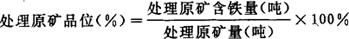 释义 | 处理原矿品位 指入选处理的原矿品中所含金属1占原矿处理量的百分比。 其计算公式为: 品位是指矿石中有用元素或它的化合物的百分比,含量的百分比愈大,品位愈高。品位应根据取样、化验的加权平均数求得。 凡有色金属应按铜、铅、锌、镍、钨、铂、锑、镁、钛等分别计算。 |