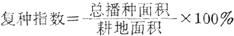 释义 | 复种指数 指全年农作物的总播种面积对耕地面积之比。 用百分数表示。反映耕地利用程度高低的指标。 计算公式为: 复种指数说明耕地在一年内平均种植的次数。例如,某地区全年农作物的播种面积为20,000亩,耕地面积为10,000亩,则复种指数为200%,即该地区一年平均种植农作物两次,也就是达到一年两熟。 充分利用耕地,提高复种指数,是扩大播种面积,增加农产量的主要途径之一。 |