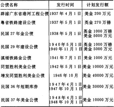 以外国货币为本位发行的国内公债。 抗日战争爆发后,国民政府财政出现了严重危机,其相继推行的法币、金圆券发行过多,导致严重的通货膨胀,致使“国币”公债发行极其困难。同时,进入中国市场的外国货币与日俱增。为了争取债信,取得财政收入,国民政府多次发行以外币为本位的公债,其中主要部分如下表:  外币公债以英美货币为主。外币公债发行后,还本付息却多折合为“国币”支付。1948年12月,又以“整理掉换旧有各种外币债券”为名,企图强行将以前所发行的外币公债统统掉换为以金圆券计算的“整理公债”,后因金圆券比法币更恶性膨胀而遭到外币公债持有人强烈抵制,不得不于1949年4月改以发行“整理美金公债”来掉换旧有未偿外币公债。 |