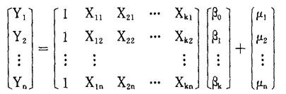 释义 | 多变量回归模型 指有多个解释变量的回归模型。 一般说,有k个解释变量的线性回归模型可表示为: Yi=β0+β1X1i+β2X2i+…+βkXki+ui i=1,2,…,n 此处Y为应变量(或被解释变量),X1,X2,…,Xk为自变量(或解释变量),u为随机扰动项,β0,β1,…,βk为待定参数。下标i表示第i次观测。 为了计算方便,通常使用矩阵表达式: 简写为Y=Xβ+μ,其中Y、X、β分别表示相应的向量或矩阵。 如果模型符合经典线性回归模型的假定,那么可以用普通[最小二乘法]计算出β0,β1,…,βk的估计值,用矩阵表示计算公式如下: β=(X′X)-1X′Y 此处X′表示X的转置矩阵。估计的回归模型为: Y=Xβ 经过统计检验、经济意义检验和计量经济学二级检验,如果模型成立,那么就可以用于经济分析和预测了。 对于违反经典线性回归模型假定的情况,参见[最小二乘法]中广义最小二乘法部分。 对于非线性模型,一部分可以化为线性模型来解;另一部分不能化为线性模型的,可用迭代法在计算机上求解,某些软件如TSP等,有估计非线性回归模型的命令,可以很方便地求解。 |