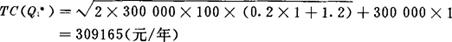 释义 | 多种离散价格条件下的经济批量 企业采购物资时,供货方往往随著采购量的不同,给出的价格不同。 若Q为订购数量,可能出现的离散价格是: 0≤Q≤N2 物资单位价格为K1 N1≤Q<N2 物资单位价格为K2 ……Nm-1≤Q<Nm 物资单位价格为Km 根据实际情况,应有: Nm>Nm-1…>N1>0;K1>K2…>Km。 这里仍以模型Ⅰ为对象,介绍这种情况下最佳经济批量的确定方法。计算步骤如下: (1)计算各种价格条件下的经济批量,用公式 (2)计算各种价格批量下的最小总费用,分两种情况进行: ❶ 如果N1-1≤Q1*≤N1成立,即(1)中计算出批量在该价格数量区域内,则 ❷ 如果N1-1≤Q1*≤N1不成立,即由(1)中计算出的批量不在该价格数量区域内,则计算出两个边界订购量N1-1,N1下的总费用,用公式: 并从中择其小者 (3)在(2)中计算出的各种价格条件下最小总费用中,择其最小者所对应的批量,即为上述条件下的经济批量,即 取 例:已知某物资需要量R=300,000单位/年,一次订购费C3=100元,每年每单位物资保管费C1=0.2K1+1.2(元),有如下几种价格情况; 10,000≤Q≤30,000 K2=0.98元/每单位 30,000≤Q≤50,000 K3=0.96元/每单位 50,000≤Q K4=0.94元/每单位 求最佳经济批量。 (1)计算各种价格条件下的经济批量; (2)计算各价格区间内的最小总费用: Q1*在0<Q<10,000范围内 Q2*,Q3*,Q4*均不在价格数量区域范围内,计算各边界订购量费用。 故最佳经济订购批量为Q*=1000单位。 〔参〕确定型模型Ⅰ |