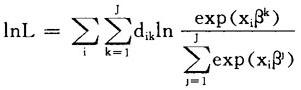 释义 | 多项对数单位模型 对数单位模型的每个个体只有两项选择,若每个个体都面临多项选择,则模型为多项对数单位模型。 假设有J项选择,第i个个体选择了第k项选择的概率为: 定义变量dik,若第i个个体选择了第k项选择,则dik=1,否则,dik=0。于是对数似然函数为: 显然,若β=(β1,β2,…,βJ)使得对数似然函数最大化,则β+c=(β1+c,β2+c,…,βJ+c)也然(c为任意常数)。所以,必须对参数施加约束,不妨设β1=0。于是 这样,就可得到惟一的参数最大似然估计。 使用过这种模型的情形包括:个体选择就业,高考生选择学校以及消费者在几个商业区中选择到哪个区去购物等。在上述各种情况下,决策者都必须从一组有限的离散备选方案中选择一个行动。 |
