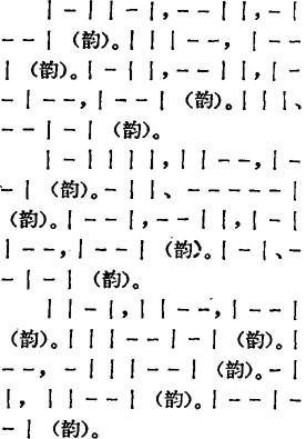 正体3叠144字,上叠10句4仄韵,中叠9句4仄韵,下叠7句5仄韵。以柳永《夜半乐·冻云黯淡天气》为例,词谱如下: