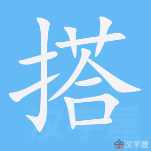 释义 | ![]() 架;支起: ~桥|违章~建|他们在天井里~了个凉棚|脚手架~完就可以开工了。 拆 chāi 这阁楼早晚要~|你们这简直是过河~桥|他们家老是~东墙补西墙的。 ❶支架起来。常作带宾、带补谓语。 成群的喜鹊在天河上边~了一座桥|小鸟把窝~在树上|舞台~矮了|棚子~好了|架子~得不太结实|车棚~了三天才~好|葡萄架很快就~起来了|这里~过两次桥,但都被洪水冲垮了|饲养员很快就~好了一个鸡窝。 ❷附挂。常作带宾、带补谓语。 门窗之间~着一根绳子|他肩上~了一条毛巾|铁丝高了,~不上去|把衣服~在竹竿上|绳子太细了,~不住被子。 ❸接连;重叠。常作带宾、带补谓语。 前言不~后语|通讯员终于把两根电线~上了|电线~得很结实|我坐在一旁,~不上话。 ❹凑在一起,加上,配合。常作带宾、带补谓语。 五六人~伙过景阳冈|买一个大的,再~一个小的|~点零头儿|这些滞销货~得太多了|时间~得不值得|时间~不起|把这块布~上才够做一件上衣|这个工作不轻,还得~上个人帮他才成|我~不起一个星期的时间。 ❺乘,坐(车船等)。常作带宾、带补谓语。 ~车去还是~船去,由你自己定|货船不~客|车~错了|只好~下一趟车了|他~上船走了|~过一次他的车|~不上这班飞机了|~错了车。 【反】 ❶拆 【词语】 搭班子 搭伴 搭乘 搭档 搭话 搭架子 搭救 搭配 搭腔 搭桥 搭桥牵线 搭手 搭头 【字族索引】 荅 【同音字】 dā |