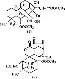 释义 | 大叶香茶菜 【名称出处】:《中草药》 【概况】: 基源 为唇形科香茶菜属植物歧伞香茶菜的干燥地上部分。 原植物 歧伞香茶菜Rabdosia macrophylla(Migo)C.Y.Wu et H.W.Li(Amethystanthus macrophyllus Migo;Plectranthus excisus auct.non Maxim). 形态 多年生草本或半灌木。茎直立,高1~1.5m,密被卷曲短柔毛。叶片近圆形或圆状卵圆形,长5.5~15cm.宽5~10cm,顶端具1凹陷,在凹陷中有长2~2.5cm长披针形的顶齿,但下部叶锐尖而无凹陷,边缘具粗大圆锯状锯齿,平行网脉两面明显可见。圆锥花序顶生或在茎上部叶腋生,由具10~15花明显两歧状的聚伞花序所组成;花萼钟形,萼齿5,微呈3/2式二唇形,下唇2齿,齿卵状三角形,顶端具短尖,上唇3齿,齿卵状三角形,较小,略向上反折;花冠白蓝或淡紫色,冠筒基部上方浅囊状,冠檐二唇形,上唇外反,下唇内凹,舟形;雄蕊4,花丝中部以下具髯毛;花盘环状。 成熟小坚果倒卵形,长约2.5mm,顶端圆形,有毛和腺点。花果期9~10月。 (图见《江苏植物志》.下册.722页.图1933) 生境与分布 生于海拔约120m的山坡、路旁或杂木林下。分布于江苏。 。【化学】: 主要含大叶香茶菜丙即冬凌草素(Ondonin)、大叶香茶菜己(Isodonal)、β-谷甾醇[1]、大叶香茶菜甲即乌苏酸、大叶香茶菜丁(Enmenol)、香茶菜甲素(Amethystoidin A)、大叶香茶菜庚(Rabdophyllin G)[2]、Lasiodonin、Lasiokaurin、棕榈酸、2-α羟基乌苏酸[3]和大叶香茶菜辛素(Rabdophyllin H)(1)[4~5]。 其中大叶香茶菜庚的结构经x衍射法测定后进行了修正,确定为如(2)式[6]。上述成分中有6种具有抗肿瘤或具细胞毒活性的二萜类化合物。 参考文献 [1] 药学学报 1981;16(10):796 [2] 药学学报 1982;17(12):917 [3] 中草药 1984;15(2):53 [4] 药学学报 1986;21(2):109 [5] 化学学报 1985;43(12):1190 [6] 化学学报 1984;42(7):645。【药理】: 本品叶中含多种抗肿瘤成分,冬凌草素体外对人体食管鳞癌细胞CaEs-17有明显的细胞毒作用,3μg/ml浓度时,细胞生长率为75%,体内对小鼠EAC癌,对照组3wk死亡,注射冬凌草素则3wk 100%存活,存活时间延长115%。 对S-180、肝癌及网组织细胞肉瘤(ARS)等均有对抗作用。对骨髓等无明显抑制[1~3]。 大叶香茶菜己在体外能抑制肝癌细胞[1],大叶香茶菜庚对体外肝癌细胞培养有显著抑制,体内对HAC实验,延命率为129.6%。 上述成分有一定的抗菌作用,冬凌草素对革兰氏阳性菌效果较好,对金葡菌的MIC为31μg/ml,对革兰氏阴性菌则为62.5~500μg/ml[3,5]。对鳞翅目幼虫有抑制其生长作用[6]。香茶菜醛作用与上相似,能抑制从蚕中肠分离的线粒体的氧化磷酸化作用[6]。 大叶香茶菜辛素对QGY-7703肝癌细胞IC50值为3.87μg/ml[7]。 参考文献 [1] 科学通报 1978;23(1):53,药学学报 1981;16(10):796,中华肿瘤杂志 1981;3(1):77,药学通报 1980;15(9):43,1981;16(5):6,中草药 1981;12(1):20 [2] Exprimentia 1976;32(2):203 [3] Chem Pharm Bull 1976;24(9):2118 [4] 药学学报 1982;17(10):750,17(12):917 [5] Agr Biol Chem 1974;38(6):1261 [6] Agr biol chem 1979;43(1):71 [7] 药学学报 1886;21(2):109。 【药性】: 功效 抗癌,抑菌,消炎。 |