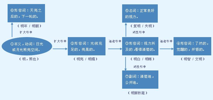 释义 | 明 1 ★★★ 00130名![]() ❶ 光线足而强,与“暗”相对: 灯火通~|窗~几净|~晃晃的光照得眼睛很不舒服。 亮 liàng ❷ 因公开而清楚: 有话请你~说|国家~令禁止进行这类活动。 亮 liàng ★ “明”语意较轻,口语中很少单用。“亮”多用于口语,如说“心明眼亮、我们打开天窗说亮话吧”。 ❶ 亮: ~亮|一轮~月|灯火通~。 暗 àn 黑~|天色已~|灯光~了|房间里很~。 ❷ 公开;显露在外;不隐蔽: 有话~说|~令禁止|开出导流~渠|~枪易躲,暗箭难防。 暗 àn 明察~访|明争~斗|明人不做~事。 ❶次于今年、今天的。 a.作主语。 ~儿是星期日。 b.作定语。 ~儿的工作,车间主任已作了安排。 ❷朝代名,朱元璋所建。现代汉语中很少单用。 ~(1386—1644),先定都南京,后迁北京。 明亮;明白;公开。 a.作谓语。 天~了|去向不~|话~气散。 b.作定语。 一轮~月挂在树梢|~令公布|~码实价|~枪易躲,暗箭难防。 c.作状语。 有话~说,不要背地议论|~来暗去,互送秋波。 d.作补语。 有什么就当面讲~,不要打肚皮官司|你应当问~事情的经过。 懂得;了解。作带宾谓语。 不~事理|深~大义。 【近】 〈形〉亮 【反】 〈形〉暗 【词语】 明辨是非 明察秋毫 明澈 明断 明晃晃 明快 明了 明明 明枪暗箭 明日 明晰 明星 明证 明智 明珠 字源解说 明,甲骨文 ![]() ![]() ![]() ![]() ![]() ![]() ![]() ![]() ![]() ![]() ![]() 附 文言版《説文解字》: 朙,照也。从月从囧。凡朙之屬皆从朙。 附 白话版《说文解字》: 明,日月照耀。字形由“月、囧”会义。所有与“明”有关的字,都采用“明”作边旁。 引申线索 ![]() 【字族索引】 月 明 【同音字】 míng |
