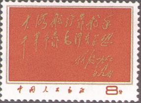 释义 | 大海航行靠舵手,干革命靠的是毛泽东思想 发行日期:1967年12月26日 齿孔度数:11 印刷版别:影写版 票幅:40×30 全张枚数:70(7×10) 设计者:万维生 印刷:北京邮票厂 (1)8分 林彪题词 1000万枚 1枚全 |