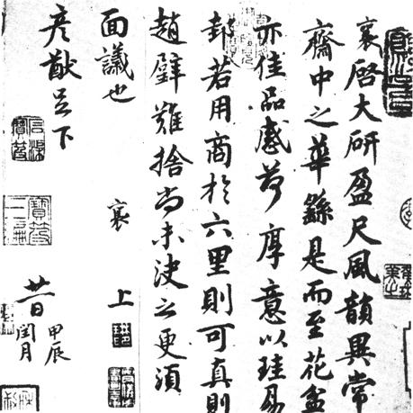 【简介】: 宋·蔡襄书。纸本。行楷书。尺牍一则。凡八行,每行字数不一,共六十七字。25.6×25cm。台北故宫博物院藏。《墨缘滙观》、《石渠宝笈三编》著录。刊于台湾《故宫历代法书全集》(十二),载入台湾《故宫书画录》卷三。 【赏析】: 经唐代的拓展和五代的蕴蓄,至宋代,一大批有识之士在晋唐行书的基础上,从各方面进行了深入的探求和实践,挣脱唐人森严法度的桎梏,更加强调自我发挥,形成了宋代尙意的书风。这其间能赓接前人,啓迪来者的当首推蔡襄。  蔡襄书法颇受颜眞卿的影响。此件尺牍,介于楷、行之间,其结构基本沿袭颜眞卿笔法,宽绰而不散漫,潇洒舒畅,疏密搭配得宜;行气疏朗明晰而气势贯通;笔法精炼灵活,点画运行顺乎笔势;落笔多作露锋,行笔以中锋圆笔爲主,偶配以侧锋,更增添其秀媚之态。难怪米芾称他的行书如“少年女子,体态娇娆”,试观此墨迹之神彩,确有容夷安和、繁华婉丽之情性。再仔细察看尺牍如第二行“华”,字,第五行的“之”字,最后的落款“廿一日,”等,可知蔡襄浸淫《兰亭序》亦深,因而有人说他的行书有“外柔内刚”、“笔力坚挺”、“行间玉润”等特点,也是恰当的评价。 |