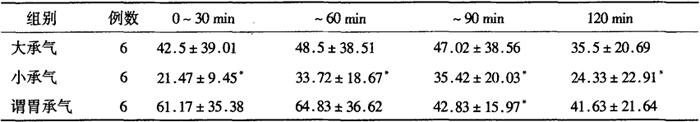 释义 | 大黄 厚朴 枳实 【中医理论】 大黄8g酒洗,厚朴4g,枳实3枚,大者炙,名“小承气汤”。大黄苦寒泻热,祛瘀通便,荡涤肠胃邪热积滞;厚朴苦温下气,除满消胀;枳实苦辛破结,导滞消痞除满,助大黄推荡积滞共奏清下热结之功用,主治痞、满、实之阳明腑实轻症。用法:合三味,以水四升,煮取一升二合,去滓,分温口服。初服汤,当更衣,不尔者,尽饮之,若更衣者,勿服之。 【药理研究】 1.抗病原体作用 实验表明,本煎剂对大肠杆菌、葡萄球菌具有显著的抑制效果,比各单味药的作用都强[1]。 2.抗炎作用 本方可降低小鼠腹部血管通透性,抑制异物125Ⅰ-白蛋白从血循环渗出,但较大承气汤弱;也抑制血管对125Ⅰ-白蛋白的吸收,而大承气汤则呈增强作用,小承气汤则无此作用[1]。 3.对胃肠功能的影响 3.1 对家兔肠运动功能影响的观察与比较 日本大耳白家兔18只,雄性,体重1.8~2.0kg,随机分为3组:大承气汤组、调胃承气汤组、加味小承气汤组。本实验采用改良Trander Lenberg在体肠运动描记法,实验动物禁食24h,10%乌拉坦静脉麻醉(1g/kg),背位固定,正中切口进腹,十二脂肠放入导管供注药用。选择末端回肠5~6cm做肠运动描记,肠腔内放入测压气囊,用肠管固定管将肠段固定以防干扰,各导管经腹壁打孔引出后关腹。信号经换能器输入电生理记录仪(日本光电RM-600)。待动物平稳后,经十二指肠管注入37℃生理盐水5ml/kg,观察30min,随后注入37℃生理水5ml/kg,观察2h。以每间隔10min的第1min描记的图形为代表,30min为一时间段,以生理盐水为基数做自身比较,观察用药后较用药前增加或降低的百分率。获取数据以t检验做显著性分析。结果见表3-16-1、表3-16-2,三组各时间段均注入生理盐水时间和频率和幅度明显增加,各组间比较结果:大承气汤组的频率和幅度增加持续时间长,到高峰后下降缓慢;与大承气汤组比较,调味承气汤频率和幅度的增加较小,二组各时间段比较均具显著差异;调胃承气汤组在0~30min频率和幅度增加显著高于大承气汤组,但很快下降。小承气汤蠕动波频率增加较大,大承气汤小,但持续时间长。肠腔压力:见表3-16-3、表3-16-4,肠腔压力的变化与肠蠕动波变化相符合[2]。 表3-16-1 家兔回肠蠕动波频率增加百分率( 注:与大承气汤组比较:*P<0.05;各组分别与生理盐水时间段比较P<0.05或P<0.01 表3-16-2 家兔回肠蠕动波频率增加百分率( 注:与大承气汤组比较:*P<0.05;各组分别与生理盐水时间段比较P<0.05或P<0.01 表3-16-3 肠腔压力波频率增加百分率( 注:与大承气汤组比较:*P<0.05;各组分别与生理盐水时间段比较P<0.05或P<0.01 表3-16-4 肠腔压力波频率增加百分率( 注:与大承气汤组比较:*P<0.05;各组分别与生理盐水时间段比较P<0.05或P<0.01 3.2 对胃肠运动的影响 健康小鼠40只,体重18~22g,雄性,随机分为4组:大承气汤组、加味小承气汤组、调胃承气汤组和生理盐水组。大承气汤冲剂(大黄、厚朴、枳实、芒硝)。调胃承气汤冲剂(大黄、厚朴、枳实、白头翁、败酱草等)分别浓缩成100%药液(1g/ml);过滤、高压灭菌后备用。动物禁食24h,分别将上述药液(对照组为生理盐水)和10%(W/V)阿拉伯树胶和5%(W/V)炭末制成悬液,按0.2ml/10g剂量灌胃,20min后将动物断颈处死并解剖,将贲门和直肠末端分别结扎,剔除肠系膜及周围脂肪组织,将消化道完整摘出。称重后平铺于玻璃板上,不加牵引,测其全长和贲门至炭末前沿的距离,计算其百分比(推进率)。所得数据t检验显著性分析。结果大承气汤组、调胃承气汤组、加味小承气汤组、生理盐水组对小鼠胃肠推进率分别为79.34±3.59、81.33±7.31、69.38±8.92和56.15±13.32。结果表明三承气汤冲剂与对照组比较都能显著提高胃肠推进率,大承气汤组和调胃承气汤组的胃肠推进率显著高于小承气汤组(P<0.01)。4组的胃肠容积分别为3.51±0.23、3.41±0.30、2.87±0.24、2.45±0.26。表明大承气汤组和调胃承气汤组的胃肠容积显著高于生理盐水组(P<0.01),加味小承气汤组的胃肠容积与生理盐水组比较无显著差异[2]。 4.其他作用 小承气汤的通便、消胀、止痛功能与方中所含的钙、镁有关;钙、镁与蒽锟类物质有协同作用,增加肠道蠕动和平滑肌的收缩运动,达到通便和消除胀满的目的。所含的锌与行气作用有关[3]。 【临床应用】 1.促进术后肠功能恢复 选择腹部术后患者204例随机分为治疗组及对照组,治疗组104例,其中男68例,女36例,年龄1~69岁,平均45.5岁。全组病例中阑尾切除术后36例、胃次全切除术后18例、胆囊切除术后14例、胃、十二指肠溃疡穿孔修补术后6例、左半结肠切除术后2例、婴儿肠扭转复位术后1例、右半结肠切除术后1例、直肠癌直肠乙状结肠经腹切除、腹膜外吻合术后1例、脾切除术后2例、盆腔内胚窦瘤摘除术后1例。对照组100例中男59例,女41例,年龄2.5~70岁,平均47.2岁。其中阑尾切除术后33例,胃次全切除术后12例,胆囊切除术后20例,小肠部分切除术后16例、右半结肠切除术后3例、直肠癌直肠肛管经腹会阴联合切除术后2例、脾切除术后3例、韧带囊肿切除术后2例,肝左外肝叶切除术后1例、斜疝修补术后8例。治疗组给予中药口服,组成:党参10g,白术12g,茯苓12g,厚朴15g,枳壳12g,木香15g,大黄9g(后下),各药物剂量根据患者年龄大小和体质强弱酌性增减,水煎服,每日1剂,分2次服,一般于术后10h开始服药。对照组患者术后不给任何刺激肠蠕动的药物,观察肛门自然排气及肠鸣单恢复情况。治疗组术后肛门排气时间分别为:<