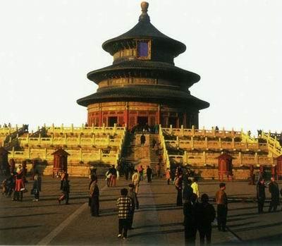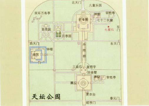 释义 | 天坛 天坛坐落在崇文区永定门内大街,占地273万平方米,是北京6坛(天坛、地坛、日坛、月坛、社稷坛、先农坛)中最大的一个,也是我国最大的坛庙建筑。它是明清两代帝王祭天、祈谷的地方。始建于明永乐十八年(1420年),后于明嘉靖和清乾隆年间增修、改建,才建成这座规模宏伟、气象万千的建筑群。 天坛有两重坛墙,分为内坛和外坛。内外两重坛墙上为圆形,下为方形,取“天圆地方”之意。天坛主要建筑集中在内坛,外坛则是一些祭天时的服务性设施。内坛建有“圜丘坛”和“祈谷坛”,天坛就是这两坛的总称。内坛中轴线上的主要建筑有祈年殿、皇穹宇、圜丘坛,它们之间用宽30米,高于地面4米,总长360米的砖砌海墁大道相连接,这条大道又叫丹陛桥,象征上天庭要经过遥远漫长的路程。丹陛桥南接圜丘坛,北连祈谷坛,中为神道,左为御道,右为王道,皇帝走御道,大臣走王道,不可越制。 由天坛北门入内,经北天门、皇乾殿,便可到达祈年殿。这里是皇帝祈求年成丰收的地方。殿宇以天圆为平面设计的构思基础,是建筑在高6米,面积5900多平方米的圆形汉白玉台基上的一座三层重檐圆形大殿。台基分三层,每屋的边沿都有雕花的汉白玉栏杆和云龙望柱,南北台阶的中间还各有3块巨大的云龙石,雕艺精致,具有典型的民族风格。 祈年殿高38米,直径32.72米,三层蓝色的琉璃瓦檐逐层收缩,殿顶是一个巨大的镏金顶,在阳光下光彩夺目。尤为出色的是这座大殿的结构,它不用大梁长檩,三层殿檐全靠28根巨大的朱漆楠木柱和36块相互衔接的枋、桷支撑著。按照其位置和排列的不同,这些柱子又都有象征的含义,分别代表著:一年四季,12个月,12个时辰,24节气,28星宿……这些大木柱,据说都来自川滇深山中。殿内地面正中,是一块圆形的大理石,上有天然的龙凤花纹,,称“龙凤石”。祈年殿外形虽有三层,但实际上只是一层的连体。明代三重檐的瓦是上蓝、中黄、下绿,分别代表上天、皇帝和臣庶,清代改建后才用清一色的深蓝琉璃瓦,象征著蓝色的天空。 从祈年殿南出祈年门,沿著那条高且大的长甬道(即台基),可达皇穹宇。它始建于明嘉靖九年(1530年),原为供奉皇天上帝及星辰风雨诸神牌位之处,有一种肃穆的气氛。殿高195米,直径156米,殿内天花板为贴金龙凤,80根金柱上是贴金缠枝莲,殿正中布置了汉白玉雕花石座,座上设龛,供奉“皇天上帝”神牌,其前方两侧各有四个方石台,是放置清代8位祖先牌位的地方。 在皇穹宇台阶前,还有3块奇妙的石板,这就是有名的“三音石”。站在靠近皇穹宇第1块石板上击一掌,可听到一声回音,站在第2块石板上击一掌,可中两声回音,站第3块上击一掌,可听三声回音。这是因为音波从皇穹宇的正圆形围墙反射回来的距离不同,所产生的声音效果。这圈圆形围墙,就是神奇的“回音壁”。它有传声的妙用,非常有趣。由于圆围墙的反射作用,两个人分别站在不同的地段的墙边,一人对墙说话在相当远的地方,另一人也能清楚地听到,简直象打电话一样。这是因声波的波长比围墙半径小得多,声波以束状沿著光滑的墙面有规则地连续反射前进所产生的。 当你在回音壁前去感受这一声学奇迹时,你会对中国古代文明发出由衷的赞叹——真是不可思议! 皇穹宇往南,便是圜丘坛。是一座洁白如玉的三层白石圆坛,坐落在外方内圆的两重围墙里,是皇帝每年冬至祭天的地点。因为是祭天的,所以把它砌成圆形,又因天是凌空的,所以台上不建房屋,对空而祭,称为“露祭”。古代把天看作阳性,故坛面、台阶、栏杆所用的石块、栏板的尺度和数目都是用阳数(奇数)来计算,即以一、三、五、七、九和它们的倍数来定。丘坛东南方有一座琉璃燔炉,祭祀时炉内焚烧松柏木,并将预先宰好的一头小牛犊送入炉内燃烧,在整个祭天仪式中,此炉一直燃烧。西南方有望灯台,祭天时,三根灯杆上各吊灯笼,灯内蜡烛为特制,燃时不灭、不流油、不剪蜡花,可燃12个小时。 石坛最上层的那块圆形大理石,也极为神奇。站在它上面小声说话,声音竟会非常洪亮,被称为天心石,或太极石。这是由于音波传到四周的石栏后,又同时从四周迅速地折射回来产生的共鸣现象。这块圆石和三音石、回音壁,都充分展示了中华民族的智慧。勤劳聪明的中国人也是极有创造精神的!圜丘坛两边有斋宫,那是皇帝祭天前斋戒沐浴的地方。斋宫内有正殿、寝宫、钟楼等建筑。正殿是一座五间大殿,殿内没有梁柱,故称无梁殿,是北京稀有的建筑之一。殿前有石亭,内有一尊铜人,手持“斋戒”二字的牌子,以提醒皇帝专心斋戒。正殿后为寝宫,皇帝祭天前要到斋宫致斋三天,即不食荤、不饮酒、不娱乐、不理刑事、不近妇女等。自雍正后皇宫内又建斋宫,称内斋,祭天前先到内斋,举行仪式前几小时才到天坛外斋。从此天坛斋宫就成为皇帝祭天前的临时休息场所。 在祈谷坛东南,还有七星石。原为7块,系明代所置风水镇石,象征北斗七星。当初明代建都于北京,即开始寻觅祭天场所,传说一日夜里,天门大开,北斗七星落于此处,遂选定此处建天坛祀天。清乾隆时期又于东北方向加放一石,以示不忘皇室祖先。不少人认为这几块石头沾了几许仙气和王气,来这里下一小块,拿回家当“镇物。 古代的祭坛与作用 明清两代帝王的祭祀场所有天坛、地坛、日坛、月坛。天坛居南,地坛居北,月坛居西,日坛居东,地坛是祭祀皇