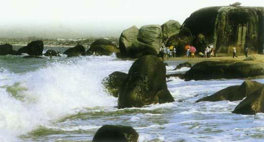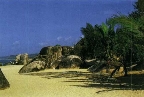 释义 | 天涯海角风景区 位于三亚市西26公里的马岭山下。天涯海角的美不仅在于这里美丽的海水和沙滩,而且更在于蓝天下,海滩上千姿百态的礁石。这里的礁石呈浑圆状或集于海滩上,如熊盘虎踞;或半没于海水中,似蛟龙戏水;或突兀于海边,像擎天巨柱。群石之中有两块岩石拔地而起,高约10米,长60余米,上面分别刻著“天涯”,“海角”四个红色大字。“天涯”二字为清雍正十一年(1732年)崖州知州陈哲所书:“海角”二字也出自清代文人手笔。“天涯”岩石的下方有郭沫若《天涯海角》诗: “海角尚非尖,天涯更有天。 波清湾面阔,沙白磊石圆。 劳力同群众,雄心藐大千。 南天一柱立,相与共盘旋。” 不远处有-7米多高的巨石直穿云天,上刻“南天一柱”四字,为清代宣统年间崖州知州范云梯所题。“天涯”、“海角”、“南天一柱”、“海判南天”等相映衬与蓝天、沙滩、白云、碧海,使整个景区如诗如画、美不胜收。 古代交通不便,“鸟飞尚需半年程”的三亚,人烟稀少、地处边陲、是历代流放“罪臣”、“逆子”的地方,被贬往这里的人深感面前大海茫茫,已再无陆地,望洋兴叹,发出“天涯海角“的感喟。如宋代名臣胡铨曾哀叹“区区万里天涯路,野草若烟正断魂”。唐代著名宰相李德裕“一去一万里,千之千不还”吐露了其望尽天涯路的悲呛。今天的天涯海角旅游区有非常便利的交通,景区内建有海水浴场、钓鱼台,让您尽情享受海滨的温馨。海边现代化建筑风格和仿古传统园林式风格巧妙结合的“天涯购物寨”、“天涯漫游区”、“天涯画廊”、“天涯民族风情园”、“天涯历史名人雕像”令游人流连忘返。附近的“点火台”、“望海阁”、“怀苏亭”等建筑点缀在山海之间,更丰富了这里的旅游内容。 天涯海角的传说 相传很久以前,这一带常年恶浪翻天,人们生活苦不堪言,在茫茫大海上捕鱼常因没有任何标记而迷失方向,葬身大海。 王母娘娘身边的两位善良仙女决定下凡帮助渔民,她们立于南海之中,指航打渔,王母娘娘得知后,十分恼怒,下令抓她们回天庭。二位仙女不肯,化为双峰石,却被王母娘娘派来的雷公炸为两块,就是今天的“天涯”、“海角”两石。一个仙女的一只手臂落到附近,就是今天我们所见的“南天一柱”。 |