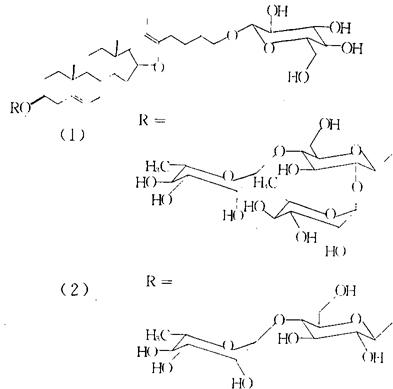释义 | 天门冬 【概况】: 异名 天 基源 为百合科天门冬属植物部分种类的块根。天门冬属全世界约300种;中国约有24种,广布于南北各地。药用的有15种。 原植物 正品天冬一般为天门冬Asparagus cochinchinensis(Lour.)Merr.(A.lucidus Lindl.;A.gaudichaudianus Kunth)。 另有2种在部分地区作天门冬或与天门冬混用:冬刺天门冬Asparagus myriacanthus Wang et S.C.Chen(A.spinosiissimus Wang et S.C.Chen non nud.),又名涅兴(藏名)。滇南天门冬A.subscandens Wang et S.C.Chen,又名天门冬、土天冬、小茎叶天冬、土百部(云南南部)。 历史 原名天 块根中含有一天冬酰胺酶,有抑肿瘤作用,目前广泛引起国内外学者的重视。 形态 多年生攀缘草本,全株无毛。块根肉质,在中部及近末端膨大呈纺锤形。茎长1~2m,分枝具棱或狭翅;叶状枝通常每3枚成簇,扁平,或由于中脉龙骨状而略呈锐三角形、镰刀状,长1~3cm,宽1~2cm,叶退化成鳞片状,顶端长尖,基部有木质倒生刺,在茎上的刺长2.5~3mm,在分枝上较短或不明显。花通常2朵腋生,单性,雌雄异株,花淡绿色;花梗长2~6mm;雄花花瓣片6,花丝不贴生于花被片上,花药卵形,长约0.7mm;雌花与雄花大小相似,具6个退化雄蕊。浆果球形,直径6~7mm,成熟时红色,具1颗种子。 花期5~7月,果期8月。(图见《中药志》,第2册,第2版,彩图13) 生境与分布 生于海拔1750m以下的山坡、路旁、疏林下、山谷或荒地上。 分布于华东、中南、西南及河北、山西、陕西、甘肃。 朝鲜、日本、老挝和越南也有分布。 冬刺天门冬与天门冬的主要区别在于叶状枝每6~14成簇,锐三棱形,长0.6~2cm,宽0.5~1mm,茎上部明显具较密的纵凸纹,分枝上的刺长于花梗。花期5月,果期7~9月。 (图见《中药志》,第3册,第2版,272页,图212)生于海拔2100~3100m的开旷山坡、河岸多沙荒地或灌丛下。分布于云南西北部和西藏东南部(察瓦龙)。 本种在西藏作天门冬药用。 滇南天门冬与天门冬的主要区别在于块根直径10~16cm,植株无刺,分枝棱上疏生软骨质齿;叶状枝每3~7枚成簇,宽0.5~0.7mm;雄蕊不等长。花期7~8月,果期9~11月。(图见《中药志》,第2册,第2版,272页,图212)生于海拔850~1700m的林下或灌丛中。 分布于云南南部。常与天门冬混用。 。【生药】: 栽培 不耐严寒,宜于温暖湿润的气候,在土层深厚、富含腐殖质、排水良好的砂质壤土生长。 于3月上旬~4月上旬分根繁殖,将母株挖起,分成数小簇,每簇应有芽1~2个,按行株距33×23cm穴栽,每穴1簇;或用种子育苗繁殖,秋播在9月上旬~10月上旬,春播于3月间播种,按行距17~20cm开沟条播或撒播,每亩用种量10~12.5kg,播后覆细土。幼苗培育1年后定植,春、秋两季均可进行。 栽种密度与分根繁殖相同。每年结合中耕除草,追肥2~3次,雨季注意排水防涝。 当蔓茎长50cm以上时,需设支柱,以利缠绕生长。 采集 秋、冬季采挖,以冬季采者质量较好。 挖出后洗净泥土,除去须根,按大小分开,入沸水中煮或蒸至外皮易剥落时为度,捞出浸入清水中,趁热除去外皮,洗净,微火烘干或用硫黄熏后再烘干。药材主产于贵州湄潭、赤水、望漠,四川涪陵、泸州、乐山,广西百色、罗城,浙江平阳、景宁,云南巍山彝簇自治县、宾川。 鉴别 性状 块根长纺锤形或圆柱形,稍弯曲,长4~18cm,直径5~20mm;表面灰棕色或黄棕色,略具绢丝样光泽或半透明,有深浅不等的纵沟纹及细皱纹。质坚韧或柔润,断面黄白色,角质样,有粘性,皮部厚,中柱明显。气微,味微甘、苦。以肥满、致密、色黄白、半透明者为好。 显微 块根横切面:根被有时残存。皮层宽广,外侧有石细胞,呈长条形、长椭圆形或类圆形,直径32~110μm,壁厚,纹孔及孔沟极细密,有的断续排列成环;粘液细胞散在,草酸钙针晶束存在于椭圆形粘液细胞中,针晶长40~99μm;内皮层明显。 中柱韧皮部束和木质部束各31~135个,相互间隔排列,少数导管深入至髓部,髓细胞亦含针晶束。 (图见《中药志》,第2册,第2版,图211) 粉末:灰黄色,气微,味微甘,带粘性,吸湿性强。 ❶ 石细胞极多,大多单个散在,也有三数个相集,淡橙黄色或无色,呈长方形、长条形或作纤维状,常易碎断,完整者长85~460μm,直径32~88μm,壁厚10~37μm,纹孔细密,孔沟细而短;另有呈类圆形或方形而壁较薄的,直径约至110μm,壁厚6~9μm,纹孔极密而较大。 ❸ 具缘纹孔导管直径18~110μm,具缘纹孔椭圆形,排列整齐成纵行,有的横向延长成梯纹排列,导管分子端壁倾斜,具梯纹状穿孔板;另有螺纹导管及具缘纹孔管胞。(图见《中药材粉末显微鉴定》,图80) 加工炮制 取原药材,除去杂质及泛油色黑者,洗净,晒至半干,切薄片,干燥。此外,尚有炒制、蜜制、朱砂制等炮制方法。 贮藏 置阴凉干燥处。防潮,防霉,防蛀。 。【化学】: 含天门冬素(Asparagine,天冬酰胺)等19种氨基酸[1]。 还含苦味甾体皂甙成分,系由异菝葜皂甙元(Smilagenin)、鼠李糖、木糖和葡萄糖组成,另有洋菝葜皂甙元(Sarsasapogenin)[2]。近年分得几种呋甾烷醇类低聚糖甙(()ligofurostanoside):天门冬甙Ⅳ、Ⅴ、Ⅵ、Ⅶ(Asp-Ⅳ、Ⅴ、Ⅵ、Ⅶ)[3]、甲基原薯蓣皂甙(Methylprotodioscin)、伪原薯蓣皂甙(Pseudoprotodioscin)(1)及寡糖呋甾醇甙{Oligofurostanoside,3-O-[α-LRhamnopyranosyl-(1→4)-β-D-glucopyranosyl]-26-0-(β-D-glucopyranosyl)-(25R)-furosta-5,20-diene-3β, 26-diol}(2)[4] 还含多种糖类成分:葡萄糖、果糖、7种非还原性低聚糖[1,5]。 含对小鼠S180有明显抑制活性的天门冬多糖(Asparagus polysacharide)A、B、C、D[6]。其它成分有β-谷甾醇和5-甲氧基甲基糠醛[1]。 参考文献 [1]新华本草纲要