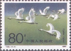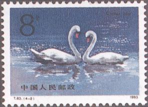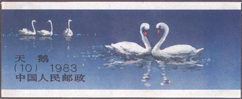 释义 | 天鹅 发行日期:1983年11月18日 齿孔度数: 印刷版别:影写版 票幅:40×30 全张枚数:50(5×10) 设计者:万维生 印刷:北京邮票厂 (1)8分 嬉水 1200万枚 (2)8分 情侣 1200万枚 (3)10分 漫游 600万枚 (4)80分 飞翔 300万枚 (1)-(4) 4枚全 SB(10)1983 天鹅(小本票) 发行日期:1983年11月18日 小本票规格:145×60 邮票面值及枚数:8分×2+10分+80分+8分×6=1.54元 设计者:万维生 印量:60万本 |