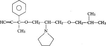 C21H31NO2=329.48 CAS-79700-63-3 1-[1-(异丁氧甲基)-2-[(1-甲基-1-苯基-2-丙炔基)氧]乙基]吡咯烷。 1-[1-(Isobutoxymethyl)-2-[(1-methyl-1-phenyl-2-propynyl)oxy]ethyl]pyrrolidine. 1-[-[[(1-甲基-1-苯基-2-丙炔基)氧]甲基]-2-(2-甲基丙氧)乙基]吡咯烷。 1-[-[[(1-Methyl-1-phenyl-2-propynyl)oxy]methyl]-2-(2-methylpropoxy)ethyl]pyrrolidine. 抗心律失常,抗咽峡炎药,抗心绞痛药。 柔利地匹。 Fronepidil,Fronedipil. INN,USAN.  |