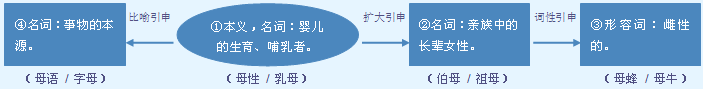 字源解说 母,甲骨文 在“女” 的胸部位置加两点指事符号 ,表示妇女因生育而发达的两乳。造字本义:婴儿的生育、哺乳者。金文 、篆文 承续甲骨文字形。隶书 有所变形。 附 文言版《説文解字》:母,牧也。从女,象褱子形。一曰象乳子也。 附 白话版《说文解字》:母,像养牛一样哺育子女。字形采用“女”作边旁,像怀抱孩子的样子。另一种说法认为,“母”的字形像给孩子喂奶的样子。 引申线索