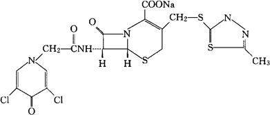 C18H15Cl2N5O5S3=548.43 CAS-56187-47-4 (6R,7R)-7-[2-(3,5-二氯-4氧代-1(4H)-吡啶基)乙酰胺]-3-[[(5-甲基-1,3,4-噻二唑-2-基)硫代]甲基]-8-氧代-5-硫杂-1-氮杂双环[4.2.0]辛-2-烯-2羧酸。 (6R,7R)-7-[2-(3,5-Dichloro-4-oxo-l(4H)-pyridyl)acetamido]-3-[[(5-methyl-l,3,4-thiadiazol-2-yl)thio]methyl]-8-oxo-5-thia-l-azabicyclo[4.2.0]oct2-ene-2-carboxylic acid. 抗生素类药。 氯氮环酮头孢菌素。 Cefazedone,Relosporen,Refosporsin. INN,BAN,USAN.  |