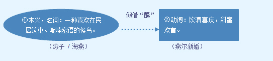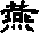 字源解说 燕,甲骨文 像一种翅膀尖长 、尾巴剪形 的候鸟,秋南春北。造字本义:一种喜欢在民居筑巢、呢喃蜜语的候鸟。篆文 将鸟头和鸟喙 写成 ,将鸟的两翼 写成 。隶书 误将篆文 的鸟尾形象当作“火”写成“四点底” ,候鸟形象完全消失。 附 文言版《説文解字》:燕,玄鳥也。籋口,布翄,枝尾。象形。凡燕之屬皆从燕。 附 白话版《说文解字》:燕,玄鸟。箝形的口,如布般轻薄的翼,枝叉状的尾。象形。所有与燕相关的字,都采用“燕”作边旁。 引申线索