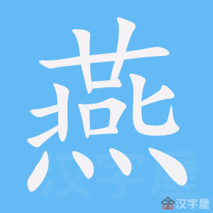 yàn ❶名鸟,体小,翼尖长,尾呈叉形,喙扁而短,口裂很深。飞行时捕食昆虫,对农作物有益。属候鸟。种类很多,常见的家燕通称燕子。 ○❷古同“宴”。 用法说明读 yān,古国名;又指河北北部。“燕京” “燕山”的“燕”均读 yān。另见yān。 燕yān ❶名周朝诸侯国,后为战国七雄之一,在今河北北部和辽宁西部。 →❷名旧时河北省的别称;也指河北北部一带。 ○❸名姓。用法说明笔顺是    ,16画。另见yàn。