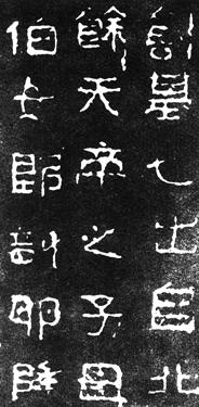 考为东晋义熙十年(公元四一四年)立。石四面环刻,共四十四行,行四十一字。书体在隶、正之间,方整遒劲,结体朴拙有天趣,风格别具。