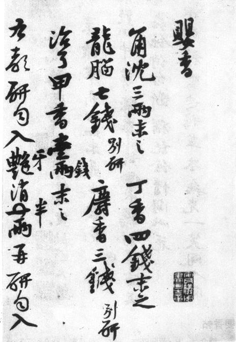释义 | 婴香帖 【简介】: 宋·黄庭坚书。纸本。行草书。28.9×37.7cm。台北故宫博物院藏。《石渠宝笈三编》著录。刊于台湾《故宫历代法书全集》(十二)。 【赏析】: 行书在黄山谷的作品裏是比较常见的,他的以中宫内敛爲擒,以撇捺外射爲纵的表现形式,深受人们喜爱。故在后世甚至有人给他的书体冠上一个“辐射体”的雅号。这副药方从其书法角度上来说,虽然没有像代表作品那样规範和得体,也没有“辐射式”的章法布局,看上去像信札形式。但点画自然,无一做作。以药方的独特方式,在字体大小,结构疏密和布局谋篇等关係的处理上,极其随意。药方中八十一字虽则忽大忽小甚至补字划圈,但错落有致,书法峻美圆润,很少有刻意做作的地方,并能根据字形本身的长短不一,而安排不同的结体。如药方中的“阴”“钱”“麝”“密”等字形较长,而“丁”“四”“七”“出”等字形较短,却加粗笔画,从而加强了通篇字形的变化,又妙得自然,可以看出其高超的书法造诣。 此外,药方中黄氏吸收苏法,很多字形和用笔上和苏东坡《黄州寒食诗》等帖有相近之处。但他用中锋直落的方法,纠正了苏氏“腕著而笔卧”的缺点,如“两”“月”“壹”“炼”等用笔圆厚紥实,细观药方,有天眞烂漫之意。药方的最后二行随意草草,置诸颜眞卿《祭姪文》、《争座位帖》两稿中,几莫辨出于两手。由此足见他学古人功力的深邃。 总之,这副药方中未见有任意草率的笔法,可以看出黄氏的作风严谨和一笔不苟,全神贯注的认眞精神。也爲我们从多角度去认识黄山谷的书风提供了一个极好的範例。 |
