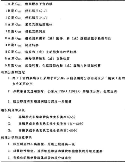 释义 | 子宫体癌 子宫体癌又称子宫内膜癌,是指子宫内膜发生的癌,绝大多数为腺癌。为女性生殖道常见三大恶性肿瘤之一,多见于老年妇女,约占女性癌症总数的7%,占女性生殖道恶性肿瘤的20%~30%,近年来发生率有上升趋势。 临床从组织学角度分为癌前病变与子宫内膜癌。癌前病变称为子宫内膜上皮内瘤样病变(EIN)。包括子宫腺瘤型增生过长伴细胞不典型及子宫内膜原位癌。本病属中医“症瘕”范畴。 〔病因病机〕 子宫体癌的确切病因仍不清楚,可能与雌激素长期刺激,子宫内膜增生过长,体质因素,如肥胖、高血压、糖尿病、未婚等,以及绝经后延或晚绝经,或遗传因素有关。 中医学认为子宫体癌的主要病因病机为情志失调,冲任受损,毒邪凝结,气滞血瘀,阻于胞宫而致气血功能失调。 〔西医诊断标准〕 本病的诊断,除根据病史、症状和体征外,最后确诊需根据分段诊刮病理检查结果。、可参照以下标准进行。 一、临床诊断 1.临床表现有阴道不规则流血,白带增多,呈浆液性、浆液血性或脓性、脓血性排液,并有恶臭,甚至伴有下腹及腰骶部疼痛。妇科检查见子宫增大,质软,甚或子宫固定、宫旁或盆腔扪及不规则结节状块物。 2.宫腔镜检查子宫内膜有典型的息肉型、结节型、乳头型、溃疡型、弥散型改变;B超、CT、核磁共振检查,可见子宫内膜有明显的结节等变化。 二、病理诊断 分段诊刮组织学证实为子宫内膜癌。 三、临床分期与手术分期标准,见下表。 表4 子宫内膜癌的临床分期(FIGO,1982) 〔鉴别诊断〕 1.更年期功能失调性子宫出血(简称更年期功血):更年期功血主要表现为月经紊乱,妇科检查无异常发现,与内膜癌的症状和体征相似,临床上难以鉴别。不应主观诊断为功血即行治疗,应先行分段刮宫,明确诊断。 2.老年性阴道炎:主要表现为血性白带,需与内膜癌相鉴别。前者见阴道壁充血或粘膜下散在出血点,后者见阴道壁正常,排液来自宫颈管内。老年妇女还须注意两种情况并存的可能。 3.子宫粘膜下肌瘤或内膜息肉:多表现为月经过多及经期延长,需与内膜癌相鉴别。及时行分段刮宫、宫腔镜检查及B超检查等,诊断并不困难。 4.原发性输卵管癌:主要表现为阴道排液、阴道流血和下腹疼痛。其与内膜癌的鉴别是前者诊刮阴性,宫旁扪及块状物,而后者刮宫阳性,宫旁一般无块物扪及。B超检查有助于鉴别。 5.老年性子宫内膜炎合并宫腔积脓:常表现为阴道排液增多,浆液性、脓性或脓血性。子宫正常大小或增大变软,扩张宫颈管及诊刮即可明确诊断。但要注意两者并存的可能。 6.子宫颈管癌、子宫肉瘤:均表现有不规则阴道流血及排液增多。子宫颈管癌病灶多位于宫颈管内,宫颈管扩大形成桶状宫颈。子宫肉瘤一般多在宫腔内以至子宫增大。分段刮宫及宫颈活检即能鉴别。 〔中医辨证分型要点〕 对子宫内膜癌的中医辨证分型,文献报道不一,现结合临床,集各医家之所长,将常见证型的辨证要点分述如下: 一、瘀毒壅滞 阴道不规则下血,淋漓不断,或绝经后又见阴道出血,量时多时少,色红,有块,带下量多,赤白相兼,味秽臭;精神抑郁或心烦易怒,胸闷不舒,小腹、乳房胀痛,舌质暗红,或有瘀斑,苔薄白,脉弦或细弦。 二、湿毒瘀滞 阴道不规则下血,日久不止,或绝经数年又阴道下血,量或多或少,色红,质粘有块。带下量多,色白或红白相兼,质稠粘,眼睑或下肢浮肿,大便粘腻不爽,舌质暗淡,苔白腻,脉滑。 三、痰湿互结 阴道不规则流血,形体虚胖,胸闷泛恶,嗜睡乏力,纳减便溏,喉间有痰,带下量多,色白,质粘腻,下腹疼痛,并可扪及包块。舌体胖大,苔薄白,脉濡滑。 四、肝肾阴虚 阴道流血,淋漓不净,色红或紫,赤白带下,量多有臭味,头晕耳鸣,口干颧红,手足心热,腰骶疼痛,溲赤便秘。舌红少苔,脉细数。 五、瘀毒走窜 阴道浊血时沥,带下赤白如脓或浑浊,味秽臭。形体消瘦,面色苍白,口干舌燥,纳差食少,低热不退。舌红或红紫,苔白少津,或光剥无苔,脉弦细或软而无力。 〔治疗〕 一、中医分型治疗 1.瘀毒壅滞 治法:行气化瘀,解毒散结。 方药:理气化瘀汤。 柴胡10g 郁金10g 水蛭10g 紫草15g 穿心莲15g 八角莲10g 石见穿15g 王不留行15g 急性子4.5g 露蜂房12g 夏枯草30g 香薷30g 加减:若气郁化火,加石上柏30g,白花蛇舌草60g,以苦寒直折,清热解毒。 2.湿毒瘀滞 治法:化湿除瘀,解毒散结。 方药:豁痰解毒汤。 夏枯草30g 生牡蛎30g 海藻15g 白术15g 水蛭10g 川芎10g 穿心莲30g 石上柏30g 胆南星10g 全蝎1条 蜈蚣2条。 加减:若偏湿热者,加僵蚕15g,苦参30g以清热燥湿解毒。 3.痰湿互结 治法:化湿涤痰,软坚散结。 方药:苍附导痰丸加减。 茯苓10g 香附6g 陈皮10g 半夏10g 南星10g 枳壳10g 神曲10g 鸡内金10g 半枝莲15g 夏枯草15g 海藻10g 昆布10g 白花蛇舌草15g。 4.肝肾阴虚 治法:滋肾养肝,清热解毒。 方药:杞菊地黄汤加减。 枸杞12g 菊花10g 生地15g 淮山药15g 山茱萸10g 茯苓12g 泽泻10g 丹皮10g 夏枯草15g 半枝莲15g 白花 蛇舌草15g 仙鹤草10g 甘草6g。 5.瘀毒走窜 治法:益气养阴,祛瘀解毒。 方药:扶正化瘀解毒汤。 人参6g 龟板15g 鳖甲15g 白术15g 生黄芪15g 枸杞子12g 首乌15g 沙参15g 紫草15g 草河车30g 石上柏30g 全蝎1条 蜈蚣2条。 加减:若阴道出血量多,加杜仲炭10g,三七粉2g冲服,以补肾化瘀止血。 若带下量多,味臭明显者,加败酱草15g,蚤休15g,半边莲15g,以清热解毒抗肿瘤。 二、西医治疗 1.手术治疗:为首选的治疗方法,尤其