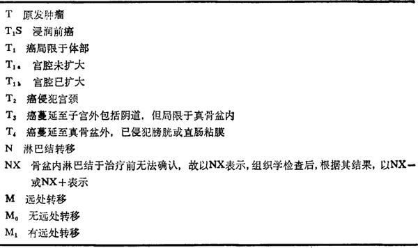 ❶ 概念 A.发生于子宫体内膜的癌。 B.好发年龄为50~60岁。 C.多数合并有不孕症、肥胖、糖尿病、高血压等。 ❷ 病因病理 A.一般为腺癌。 B.临床分期如表Ⅰ-8、表Ⅰ-9。 表Ⅰ-8 子宫内膜癌临床分期(国际妇产科联合会(FIGO),1982年)  ❸ 临床症状 A.阴道出血。 B.白带异常。 C.下腹痛。 ❹ 诊断及检查 A.内诊。 B.子宫腔内细胞学检查。 C.子宫内膜组织学检查。 D.子宫探针检查。 E.子宫镜检查。 F.超声波检查。 G.CT扫描。 ❺ 治疗方针 A.手术疗法:根据临床分期,行腹式单纯子宫全切除术或广泛性子宫全切除术。 B.放射疗法:与宫颈癌同。 C.药物疗法:与宫颈癌同,但作为特殊疗法,有高浓度黄体激素疗法。 ❻ 预后:一般统计5年存活率Ⅰ期为75~85%,Ⅱ期为50%,Ⅱ期为30%,Ⅳ期为5%左右。 |