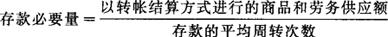 指一定时期内银行为保证国民经济中的转帐结算方式进行的商品和劳务供应量的支付而必须的存款量。其计算公式: