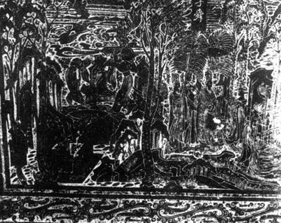 释义 | 孝子画像石棺 【作品赏析】: 石棺于三十年代在洛阳城郊出上,后流落于海外。 线刻画刻在石棺的两帮外侧。内容为孝子故事,表现舜、郭巨、董永、蔡顺、王琳等的行孝事迹。 每幅故事上方有一榜题。两帮自前向后各有三组连续性画面。 每个画面表现一个孝子故事。右帮按顺序:第一组画面是本图所介绍的舜的故事。一株大树下,左边是舜的父亲和异母兄弟在后母唆使下,趁舜入井之机,往井里填石。舜双手紧攀井栏,回头侧视正下毒手的父与弟。 右边是舜和帝尧之女娥皇、女英相会。 舜戴束发高冠,著褒衣博带式袍服,长髭髯,容貌清秀,神情俊朗,俨然是一个气宇轩昂的帝王形象。 娥皇、女英身材修长,长裙曳地,裙带当风。第二组画面为孝子郭巨埋儿侍母的故事。 由三个连续性情节构成:其一,郭巨为其老母进食,老母一手端碗,一手喂怀内的幼孙。其二,郭巨在树下持锹掘地欲埋子,意外得到一罐金子。其三,郭巨和怀抱幼子的妻子抬金罐回家。第三组画面为两个连续性情节,表现孝孙原谷十分不情愿地和父亲用舆抬著年迈的祖父去荒野,把老人遗弃在野地里以后,父子二人回家。 这时原谷仍背著舆不放,父亲命他放下时,他陈述了不放的道理,使父亲明白了自己的错处。左帮自前向后,第一组画面画董永为葬父卖身抵债,于田间劳作时遇到天仙纺织女。 第二组画面表现孝子蔡顺的孝行,画面左侧是邻舍起火,三四个邻人正在背水救火或观望火势,而身披重孝的蔡顺完全不理会大火已烧到家门,仍在伏棺号哭。第三组画面为:左侧,林间一群强盗横路拦劫,盗首骑高大骏马,马左是两个强盗束发紧衣,伫立一旁,马右是一强盗拉著绳索,系著一个被捆绑的少年,另一束发少年双手背缚,长跪求情。 右侧,是群盗将两个少年释放,二人各背一包袱离去。从情节内容和榜题可知,这个画面表现的是孝子王琳的故事。 孝子棺石刻画采用阴线刻画形象,象外减地的方法。此棺线刻画在线的运用上十分成功。 精细绵密而又富有韧性的线条赋予人物的肌肤以丰润的弹性质感。“春云浮空、流水行地”般的线描,表现了衣裙、飘带轻软流动的丝绸质地。“劲利如锥刀”般的线条,表现了山石的峭拔和坚硬。 在人物造型特征上,是南北朝时期流行的“秀骨清像”风格。山水背景的处理带有浓厚的装饰意味。从一个侧面,反映出山水画发展早期的某种稚拙特点:“人大于山”,“水不容泛”。尽管此作是线描石刻作品,但它仍可以从某些侧面反映出北魏晚期绘画发展的面貌。。 北魏 石刻画 河南洛阳出土 纵62.5厘米 横223.5厘米 藏美国堪萨斯城纳尔逊美术馆 |