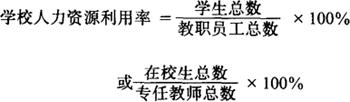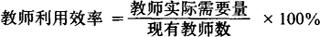 教职员工总数中应减去学校中生产人员和附属单位人员数。在学校人力资源利用效率中,提高教师的利用效率有重要作用。学校中教师利用效率的计算公式是: