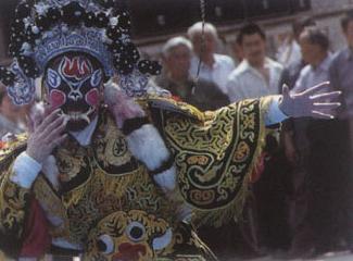 释义 | 宁海平调 宁海平调,是浙江调腔的一个重要支派,由于它唱腔略低,属于调腔中的四平,故称“平调”。 它是一种以演唱高腔(平调)为主,兼演部分昆腔、乱弹的戏曲剧种。 宁海平调唱腔、表演非常有地方特色。唱腔以曲牌体为主,多为阴、阳两声结合。一般老生发音较高亢、洪亮,多用鼻音;小生较挺拔、有力,多用假嗓;净角较粗犷、雄壮,声带振幅大。 演员一人前台唱,后场众人帮唱,遇到较长拖腔时,往往会根据字韵,将句末一字割裂开来,按其音韵行腔。白口以宁海官话为准,声音洪亮,听起来很动听。 “宁海耍牙”是宁海平调表演中独具的一门绝活儿,至今已有一百多年的历史。口含四颗、八颗甚至十颗野猪獠牙,在口内,时而快速弹吐,时而刺进鼻孔,时而上下左右歙动,或有两颗刺出鼻孔,尤其是有两颗牙始终藏于口内,仍要唱、做、念、打。 表演以耍牙绝活最精彩,乐器伴奏主要分为唱功、做功和吹打三大类。打击乐器在唱腔的伴奏较有规律,节奏平缓,适于小生、花旦的演唱。唢呐是唯一管乐器,既用以表现较为准确的音阶,又要为名曲牌之间的连接起引导作用,更为演员上、下场,大幅度动作和更换地位等渲染气氛。 “宁海耍牙”是宁海平调表演中的一门绝活儿,至今已有一百多年的历史。 |
