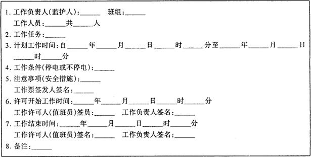 释义 | 安全工作制度 (一)工作票制度 工作票有两种,即第一种工作票(停电作业工作票)和第二种工作票(不停电作业工作票)。两种工作票的式样见表4-1-7和表4-1-8。 表4-1-7 变电所第一种工作票 在高压设备或高压线路上工作需要全部停电或部分停电者,以及在高压室内的二次回路和照明等回路上的工作,需要高压设备停电或采取安全措施者,应填用第一种工作票。 在带电作业或带电设备外壳上的工作,在控制盘、低压配电盘、配电箱、电源干线上的工作,以及在无需高压设备停电的二次回路上的工作等情况下,应填用第二种工作票。 根据不同的检修任务、不同的设备条件以及不同的管理机构,可选用或制定适当格式的工作票。例如,检修线路的工作票与检修设备的工作票就小有区别。不论哪种工作票,都必须以保证检修工作的安全为原则。 工作票签发人应由熟悉情况的生产领导人担任。工作票签发人必须对工作人员的安全负责,应在工作票中注明应拉开开关、应装设临时接地线及其他所有应采取的安全措施。工作负责人(电工班长)应在工作票上填写检修项目、工作地点、停电范围、计划工作时间等有关内容,必要时应绘制简图。工作许可人(值班员)应按工作票停电,并完成有关安全措施。然后,工作许可人应向工作负责人交待并一起检查停电范围和安全措施,并指明带电部位,说明有关安全注意事项,移交工作现场,双方签名后才许可工作。工作完毕后,工作人员应清理现场,清查工具;工作负责人应清点人数,带领撤出现场,将工作票交给工作许可人,双方签名后检修工作才算结束。值班人员在送电前还应仔细检查现场并通知有关单位。 工作票应编号,每次使用时一式两份,工作完毕后,一份由工作许可人收存,一份交回给工作票签发人。已结束的工作票,保存3个月。 紧急事故处理可不填用工作票,但应履行工作许可手续,并执行监护制度及其他有关安全工作制度。 无需填用工作票的检修工作应执行口头命令或电话命令。口头或电话命令必须清楚、准确。值班员应将发令人、负责人及工作任务详细记入记录簿上,并向发令人复诵核对一遍。 在检修工作中,工作人员应明确工作任务、工作范围、安全措施、带电部位等安全注意事项。工作负责人必须始终留在现场,对工作人员的操作认真监护,随时提醒工作人员注意安全。对需要进行监护的工作,如不停电检修工作和部分停电检修工作,应指定专人监护。监护人应认真负责,集中精力,防止一切可能发生的意外事故。 (二)操作票制度 1.高压倒闸操作应填用操作票。操作票是保证正确和安全地进行停、送电等倒闸操作的书面文件。事故处理、拉合开关的单一操作、拉开接地刀闸或拆除本单位仅有的一组临时接地线等无需办理操作票,但应将操作项目记入操作记录簿上。 2.操作票上应填写日期、编号、发令人、受令人、下令时间、操作开始时间、操作结束时间、操作任务、操作顺序及项目、操作人、监护人及备注等项目。 每张操作票只能填写一项操作任务。操作项目应按顺序逐项填写,并应注意下列事项:拉开或合上各种高、低压开关之后应检查开关是否在断开或合闸位置;送电前应检查断路器是否在断开位置;电压互感器接通后及送电前后应检查母线电压;在并列运行等情况下应检查负荷分配;装设临时接地线前应检查设备(或线路)是否无电;送电前应检查临时接地线是否拆除;取下或装上熔断器,解除或恢复继电保护亦应填入操作票项目。操作程序决定于操作项目和接线方式。 送电操作应特别注意防止带地线合闸,并应遵循以下操作程序: (1)检查为检修装设的各种临时安全措施和临时接地线是否完全拆除; (2)检查有关的继电保护和自动装置是否已经按规定投入; (3)检查断路器是否在分闸位置; (4)合上操动能源,装上断路器控制回路直流熔断器; (5)合上电源侧隔离开关; (6)合上负载侧隔离开关; (7)合上断路器; (8)检查送电后的电压、负荷是否正常。 停电操作应特别注意防止带负荷拉隔离开关和带电挂地线;并应遵循以下操作程序: (1)检查有关仪表指示是否允许拉闸; (2)拉开断路器; (3)检查断路器是否在断开位置; (4)拉开负荷侧隔离开关; (5)拉开电源侧隔离开关; (6)切断断路器的操动能源; (7)拉开断路器控制回路的熔断器; (8)按照工作票的要求实施各项安全措施。 3.操作票的发令人应为调度员或生产负责人,受令人一般为主要值班员,监护人一般为值班长,操作人一般为值班员。 4.操作票也应编号。使用完了的操作票应注明“已执行”的字样,并保存3个月。 (三)工作监护制度 监护制度是保障检修工作人员人身安全和正确操作的基本措施。监护人应是技术级别较高的人员,一般由工作负责人担任。监护人不得不暂时离开现场时,应指定合适的人代理监护工作。监护人的主要职责是: 1.监护人应检查各项安全措施是否正确和完善,是否与工作票所填写项目相符。 2.监护人应组织现场工作,并给工作人员交待清楚工作任务、工作范围、带电部位及其他安全注意事项。 3.监护人应始终留在现场,对工作人员认真监护。监护所有工作人员的活动范围和实际操作,包括工作人员及其所携带工具与带电体(或接地导体)之间是否保持足够的安全距离,工作人员站位是否合理,操作是否正确。监护人如发现工作人员的操作违反规程